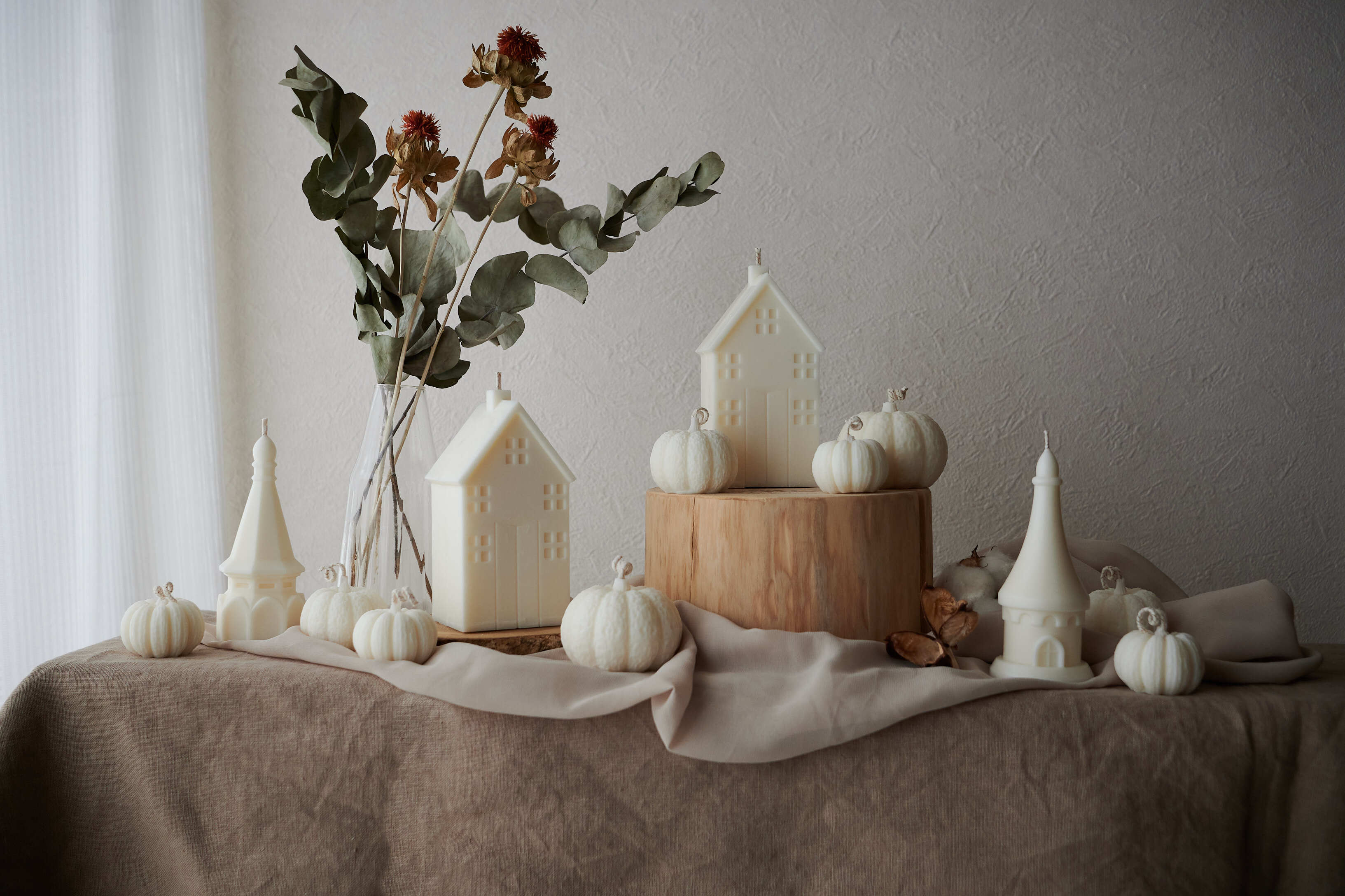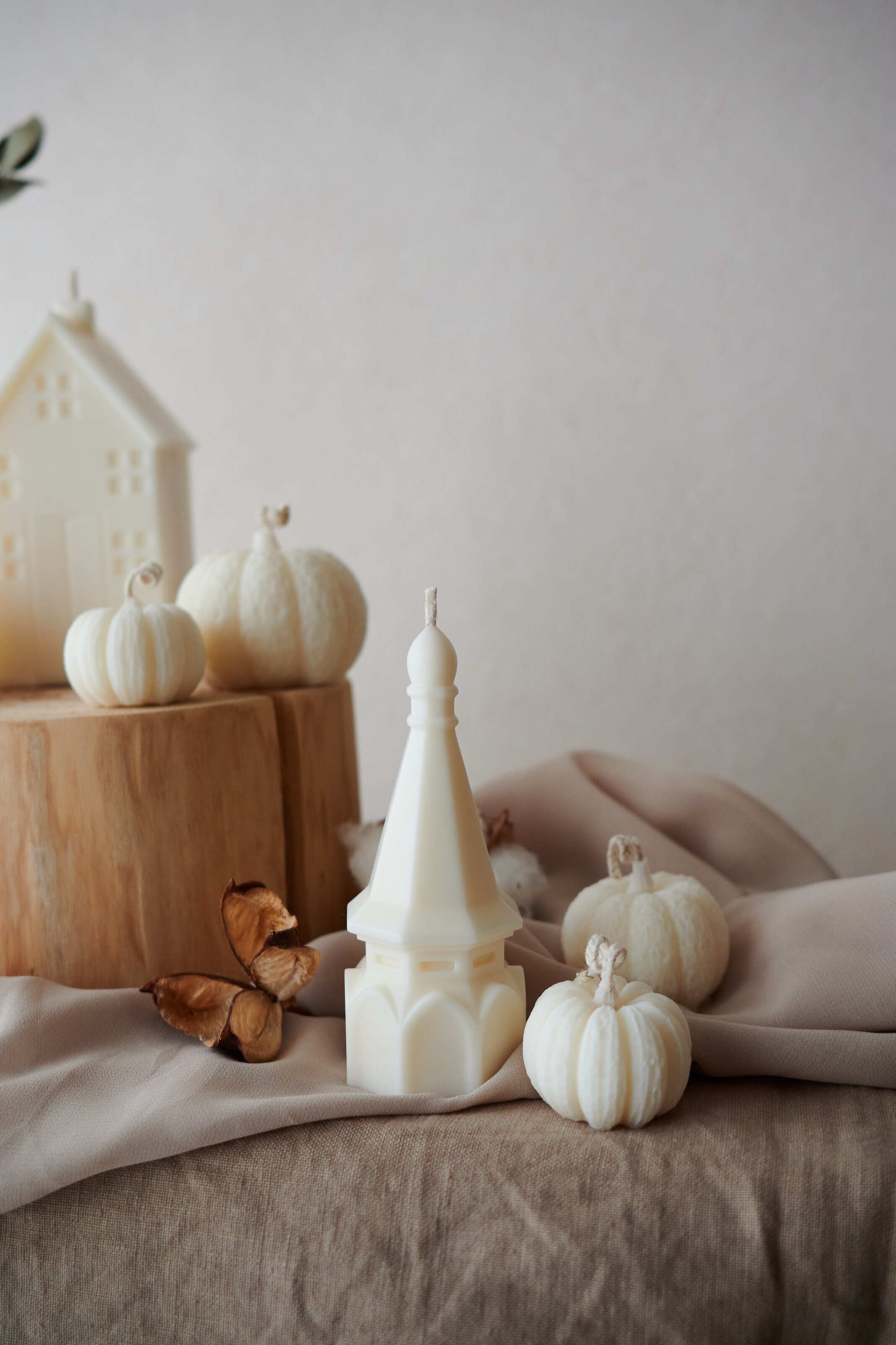 ハロウィンやクリスマスのデコレーションとして飾れるお城のようなハウスキャンドル。